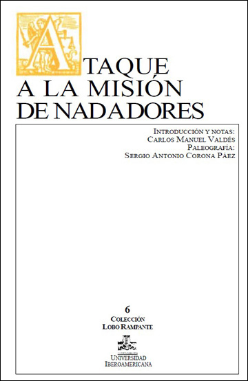 Ataque a la misión de Nadadores. Dos versiones documentales sobre un indio cuechale es una espléndida contribución al conocimiento historiográfico de (y en) Coahuila. Dos documentos con información contradictoria son examinados aquí por Carlos Manuel Valdés, maestro y candidato al doctorado en Historia por la Universidad de Perpiñán, en Francia, especialista en historia india de Coahuila y autor de una buena cantidad de textos de relevancia como La gente del mezquite y Sociedad y delincuencia en el Saltillo colonial, títulos donde, al igual que en este Ataque a la misión..., los lectores vislumbramos la dialéctica del pasado neovizcaíno con sus terribles ingredientes de arrasamiento y desolación, pero también de fortaleza y heroísmo en todos sus actores, incluido Don Diego de Valdés, el “capitán general de las naciones de oriente” que ocupa el centro de la escena en este libro.